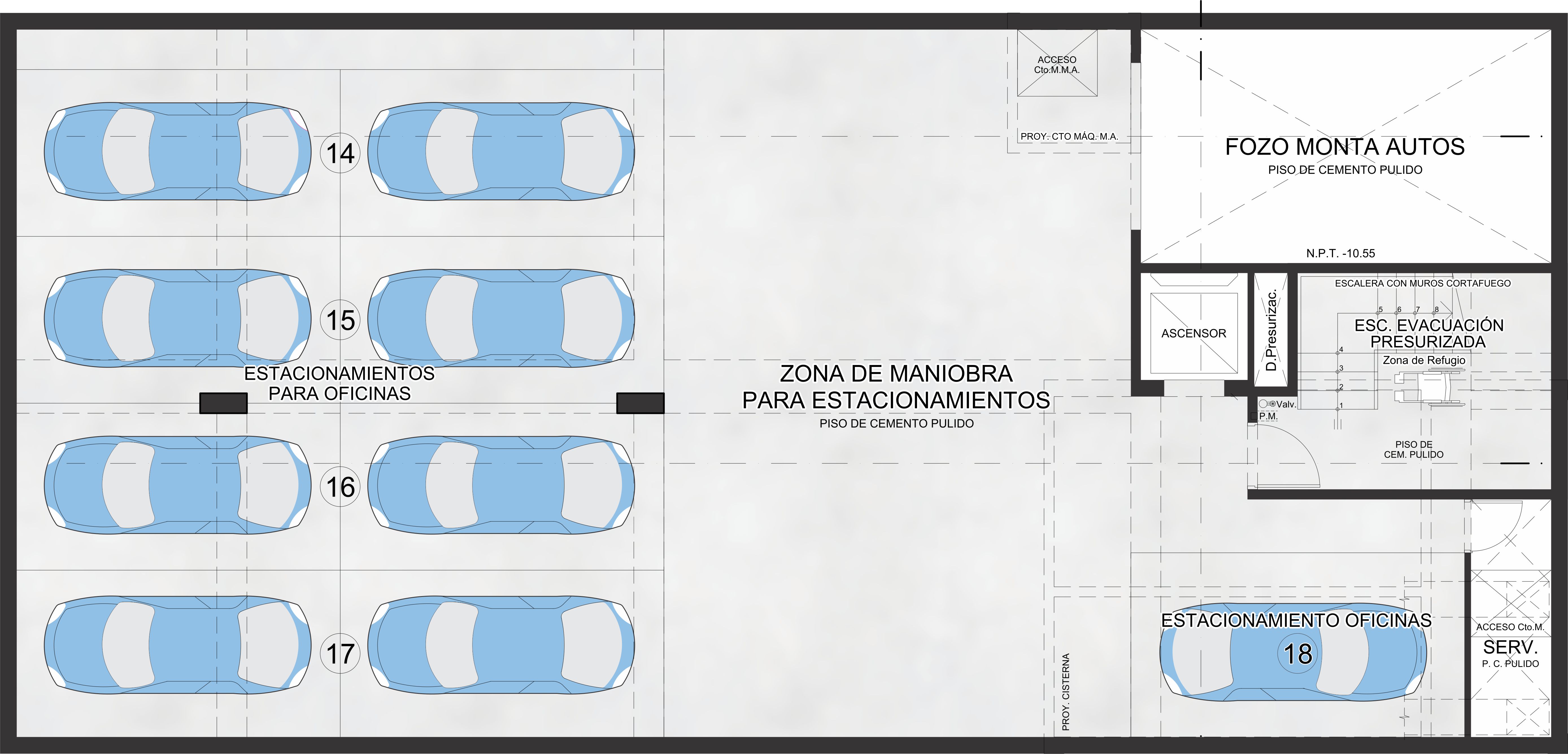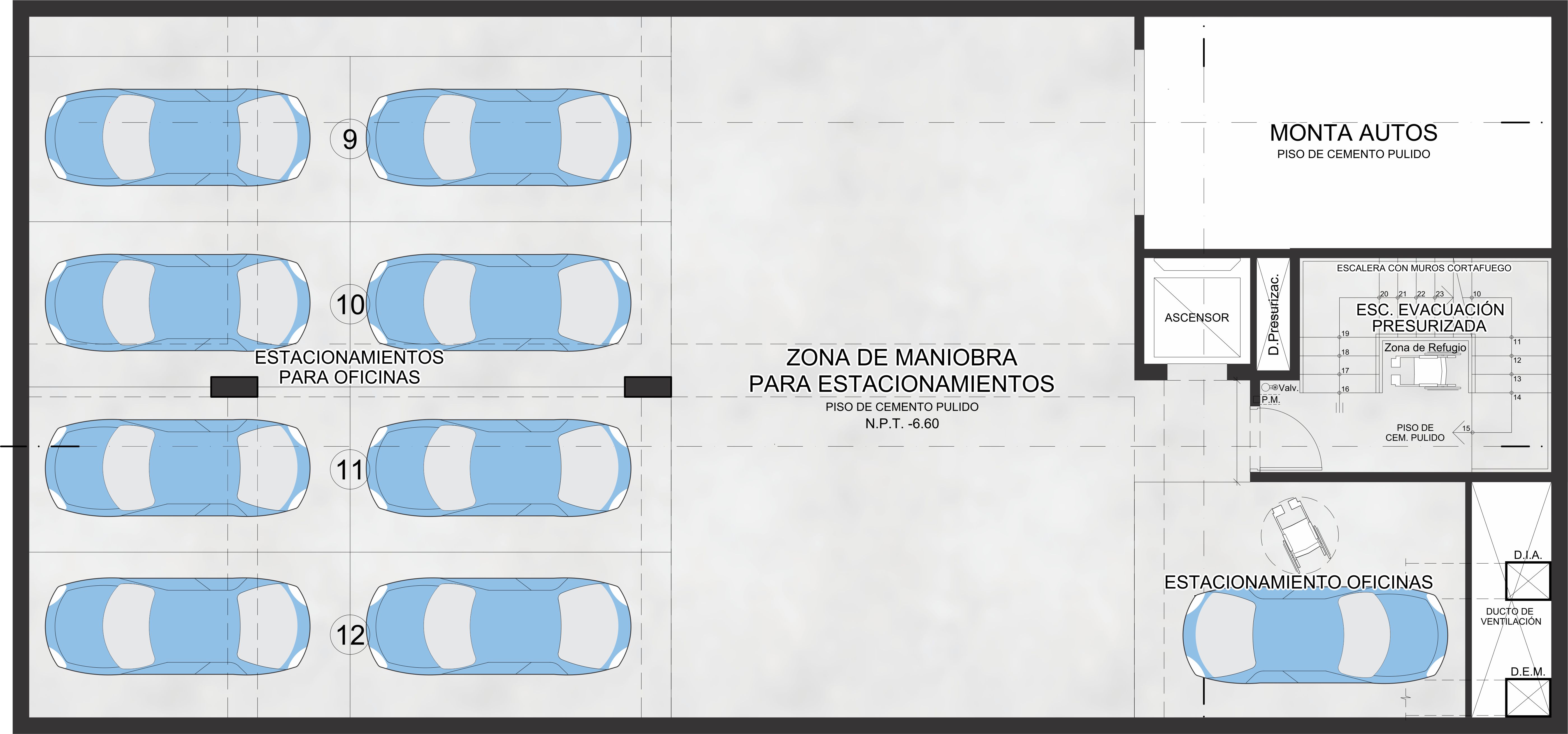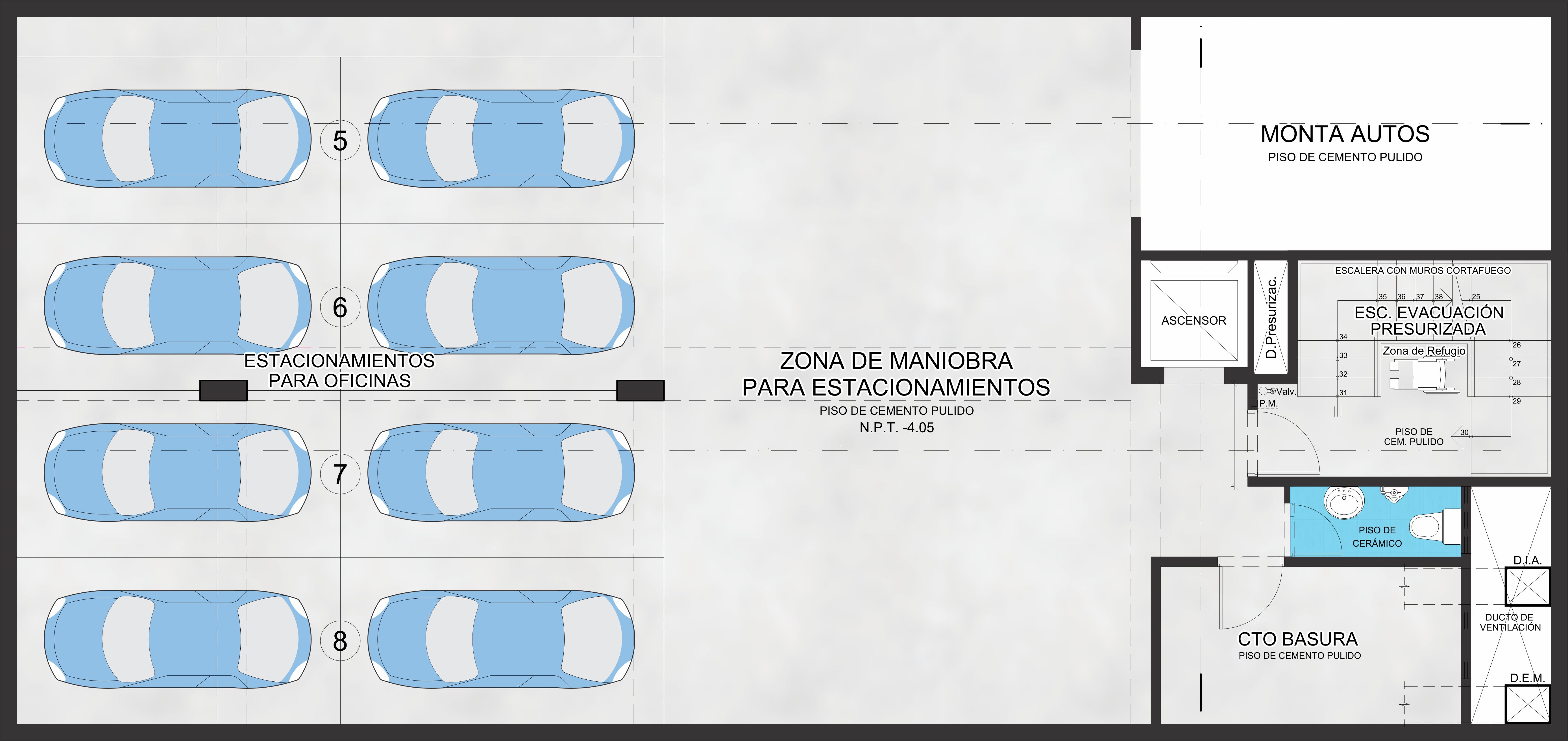 – Cafetería, como algo complementario se ha diseñado un espacio comercial que permita a los usuarios del Centro de Oficinas tener un lugar de esparcimiento, donde puedan consumir alimentos o pasar tiempo de interés personal.